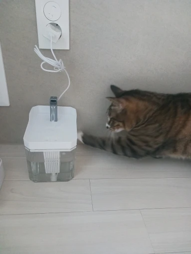 My cat immediately loved it! It works quietly and does not make annoying noise. It looks stylish, i recommend it to everyone! I thought the faucet would be metal, the entire structure is plastic, but this does not affect the functionality in any way.