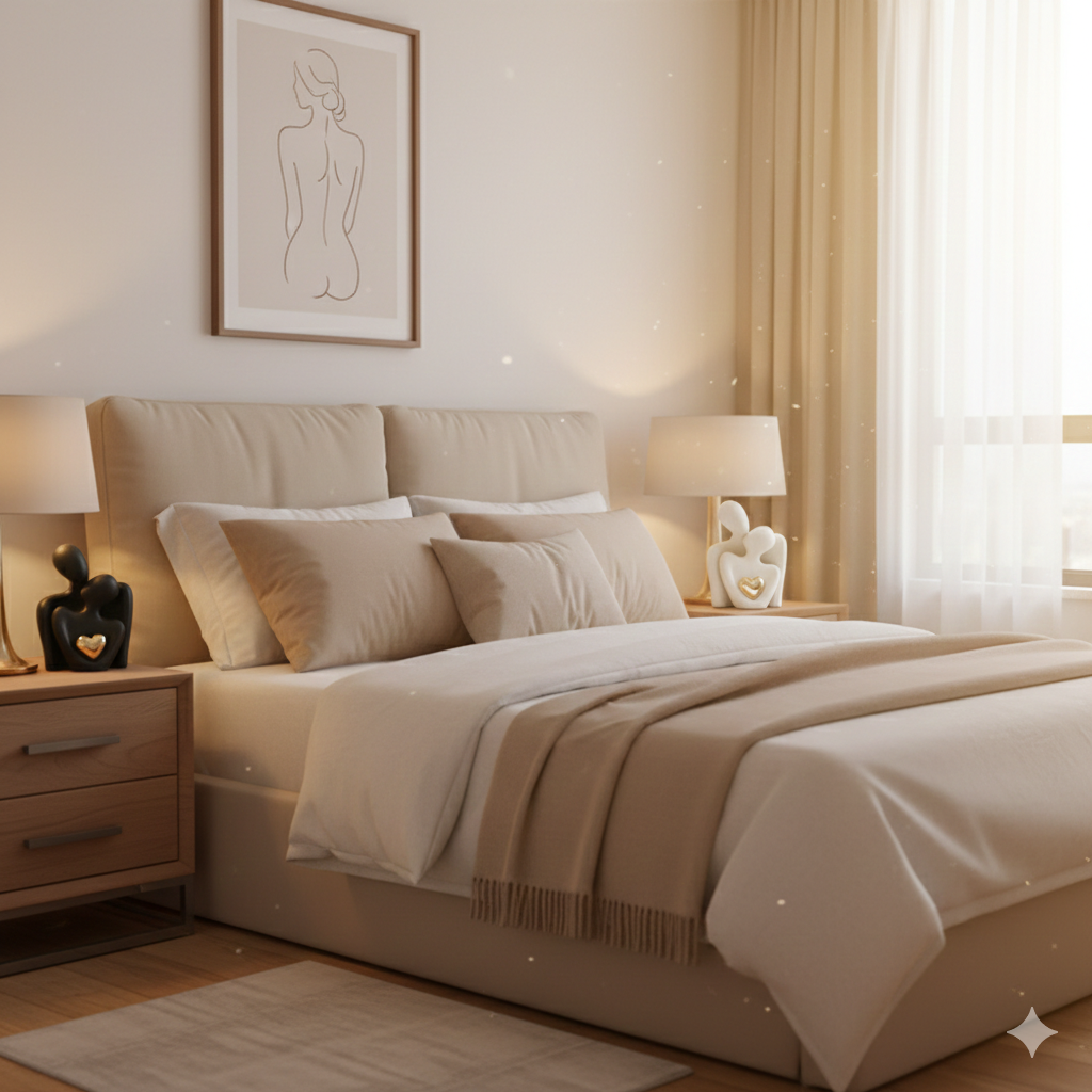 Placing the black figure on one side and the white figure on the other creates a "balanced" harmony in the room where love begins and ends each day. Alternatively, styling them together on a dresser top next to a wedding photo creates a dedicated "shrine" to your partnership.